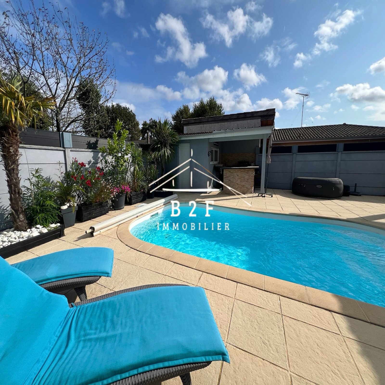 Sur un terrain paysager de 669 m², l’extérieur est un véritable espace de vie :