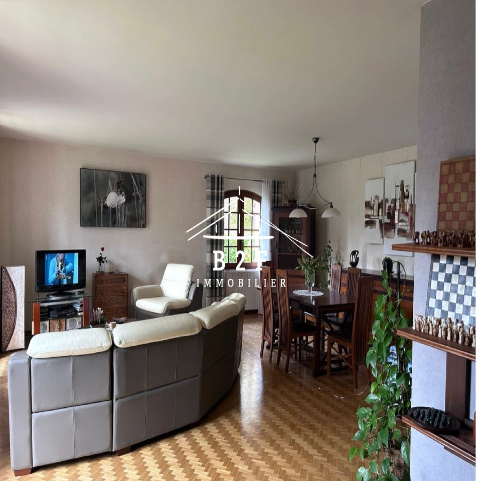 Un lumineux salon-séjour d'environ 43 m², idéal pour recevoir.