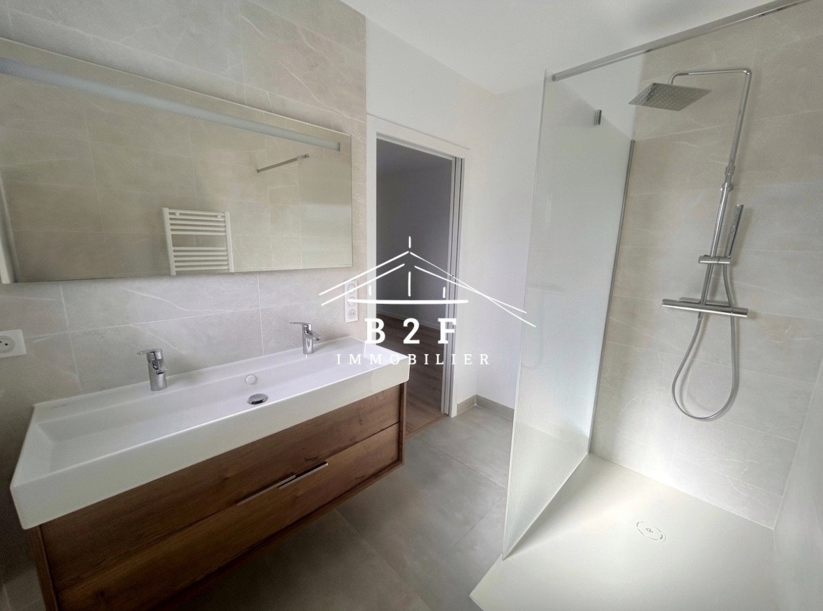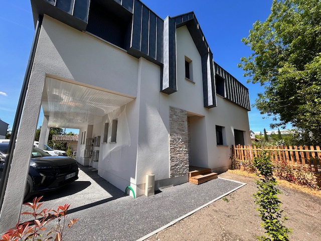 Construction récente avec prestations de qualité : maison lumineuse, climatisée, aux finitions soignées.